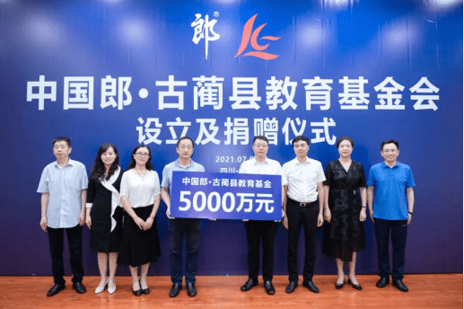 为建设可传递的人才生态圈,郎酒将人才培养和商业向善并驱并行:截至2021年,郎酒已连续11年开展职工子女助学奖励活动,向郎酒厂公司高考成绩优异的职工子女颁发奖励助学金;自1999年起,郎酒连续20余年在全国各地坚持开展“郎助郎·上学堂”,“中国郎·大学梦”等义卖捐资助学活动,先后援建希望小学五所,资助贫困学生近万名;同时连续10余年,向泸州市栋梁工程、古蔺县栋梁工程捐款;2021年7月,郎酒向古蔺县捐赠5000万元公益助学基金,支持古蔺教育事业发展……