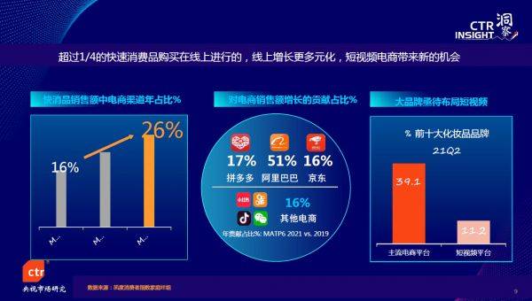 值得注意的是,中国快速消费品市场较2019年增长6.4%,超越疫情前水平,在消费市场步入“本土”时代的背景下,消费者表现出健康认知升级、重新审视自身消费需求、期望社交表达等最新变化趋势;中国媒体融合进入经营突破的关键阶段,媒体在经营模式、资源开发及内容营销服务领域不断创新,短视频平台加速商业化进程,正在由流量经营向内容经营、交易经营转移。