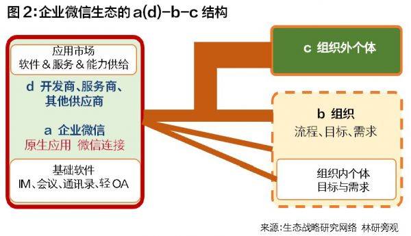总之,a(d)-b-c结构是企业微信生态所独有的,这意味着存在结构性差异竞争的基础。