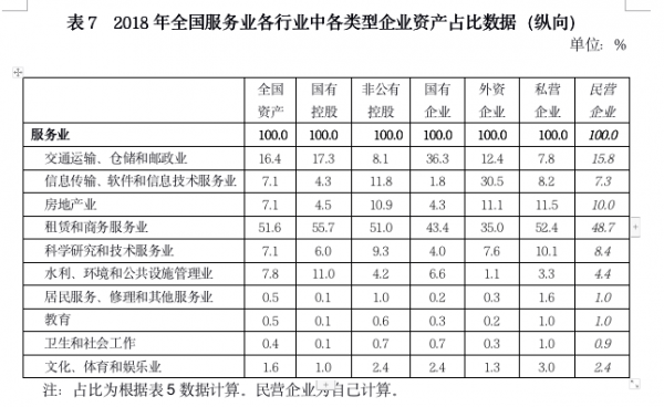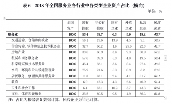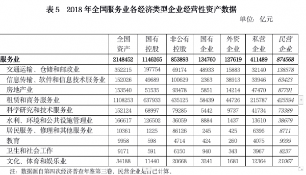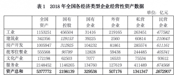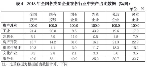 注:1、数据均来自第四次经济普查年鉴,斜体数均为推算数;2、工业为规模以上工业企业,规模以下无各类型企业相关数据;3、建筑业、房产开发、批零住餐业三行业中的国有控股资产,为同行业股份制企业资产的1/3(可归类为国有控股企业的估计数)加国有企业资产;4、文化产业为扣除文化制造业(因属于工业制造业)后的数据,均为控股企业数据;5、民营企业资产为除国有控股资产和外资企业资产外的其他所有企业资产(下同)。