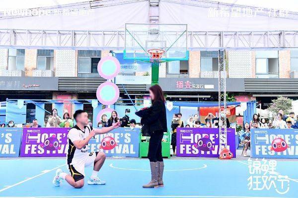 据悉,就在本次篮球总决赛中途,未曾想到浪漫时刻也正在现场悄悄来临,来自温州队的09号球员在最终决赛开赛前休息时间,来到赛场中间向自己的未婚妻现场求婚,用爱连接一切美好,新希望地产社群的初衷在此时此刻,得到了最美好的诠释。