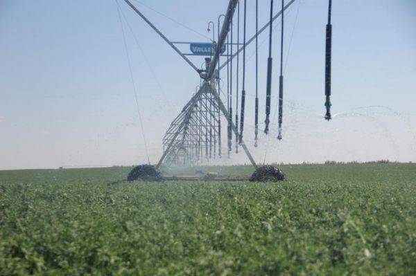 伊利在合作牧场推广指针式喷灌节水设备给苜蓿浇水