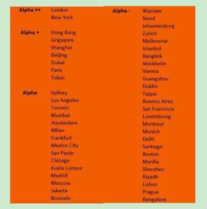 (图表来源:The World According to GaWC 2020 https://www.lboro.ac.uk/gawc/world2020t.html)