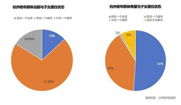 不在一个屋檐下,并非意味着老人远离子女。在杭州,71%的老人均与子女同住一个城市,如今六七十岁老人的子女,正是80后与90后的一代,两代人之间生活习惯、兴趣爱好差异较大,更多老人希望保持“一碗汤的距离”,兼顾隐私、自由与照看便利性。