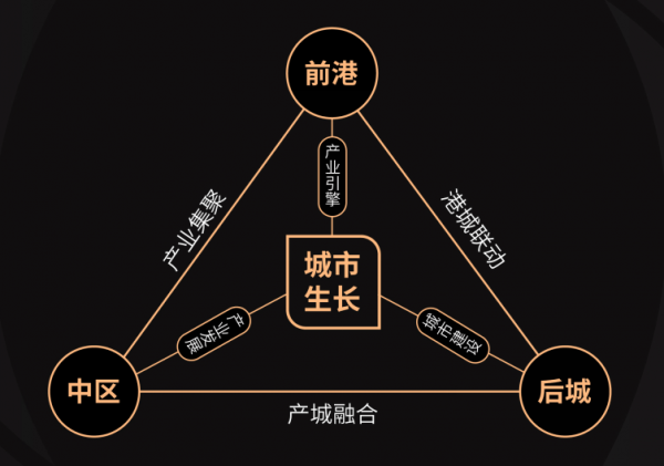 从整体结构上,招商蛇口的内在逻辑,是“前港-中区-后城”的综合开发运营模式,又被称为“蛇口模式”,就是以港区的人流、物流、信息流带动园区的产业落地、产业发展和产业创新,进而推动人口不断流入、城市配套不断完善、城市环境不断优化,实现城市持续繁荣。