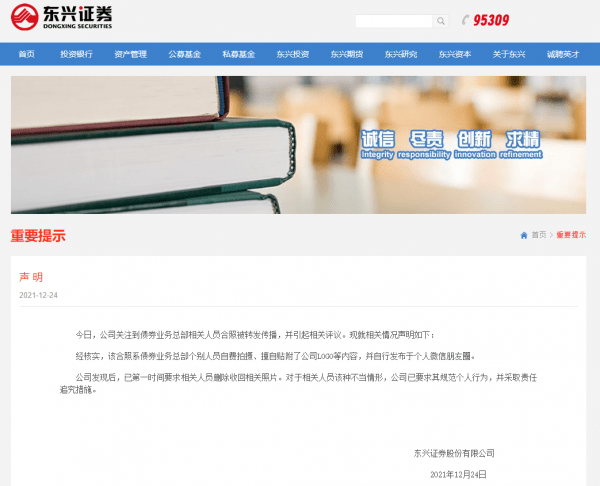 东兴证券今日亦在官网进行回应: