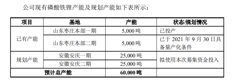 01募资扩5万吨磷酸铁锂
