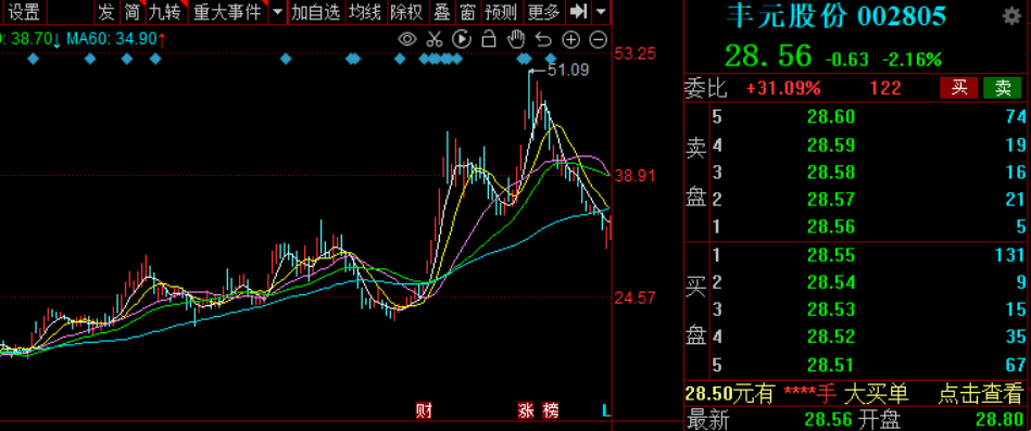 2022年1月13日,丰元股份小幅下跌2.16%,股价28.56元,最新总市值50.82亿元。