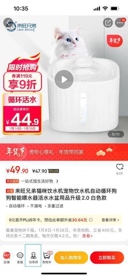 除了从细分领域与专家团队不断强化京东健康宠物医院的专业实力,京东宠物还从用户产品选购页面上做出了全新的升级。据悉,京东宠物问宠医入口已经正式升级为底部icon平铺,用户不仅可以通过京东健康宠物医院的专属页面进入到问诊入口,更可以从选购商品底部直达咨询页面,例如在宠物食品页面下方可以一键沟通“免费咨询宠物营养师”,而宠物用品页面则能一键连通“免费咨询宠物行为训导师”,导向更为精准和专业,帮助用户实现产品选购+问诊的一站式全套服务。