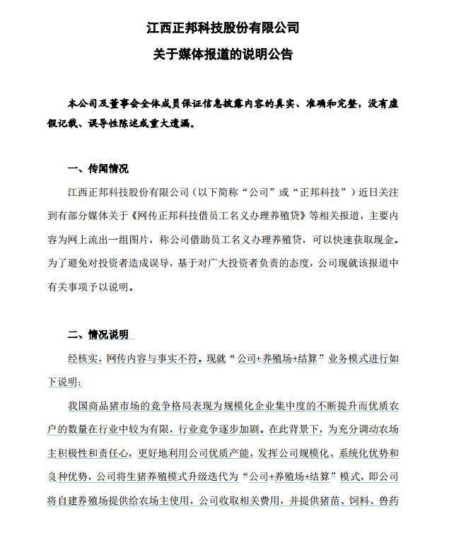 经核实网传内容与事实不符。现就“公司+养殖场+结算”业务模式进行如下说明: