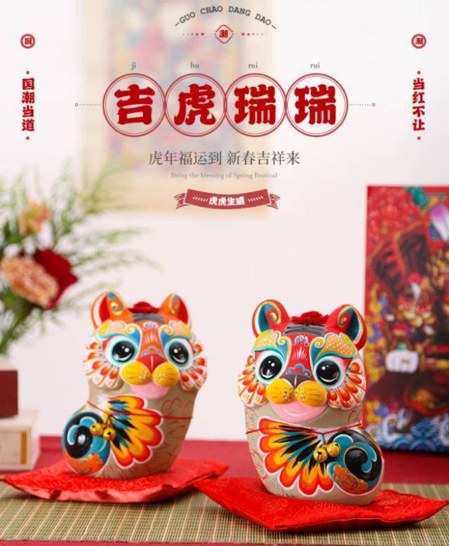 除携手年画日新外,此次京东年货节期间,京东居家还联合多家知名文创IP、老字号品牌,推出众多国潮特色新年货,多方位诠释新时代的“年味”。其中,国潮原创品牌妙手回潮推出的诸事顺利礼盒,其外包装可以经过简单DIY,变形为一本挂历;阖家团圆礼盒革新对联呈现方式,将现代插画与漫画对话的形式相融合,展现新型“发声”对联;还有虎星高照礼盒,以陶瓷老虎灯为核心,打造“虎啸山河”立体书窗插画结构礼盒。吉兔坊则运用非遗泥彩塑技艺,原创吉虎瑞瑞,并以此为基础,推出带布艺守财虎、手链、保温杯等不同内容的多版礼盒。