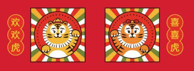 “欢喜虎”主题小对联系列手机贴,迎合了时下年轻人置办电子年货的新潮流。手机、平板电脑等为载体,“欢喜虎”凭借卡通设计,赋予其更多活泼灵动之感。“欢欢虎”和“喜喜虎”,分别为黄色和橙色,以福建漳州年画中的虎形象为原型,使用其传统配色,并且保留放射状四色线条与白色毛发等特征,充分体现了漳州年画的特色。在此基础上,年画日新创作营进行创意设计,使欢喜虎的形象更加可爱且富有神韵,充满年轻人青睐的趣味巧思。