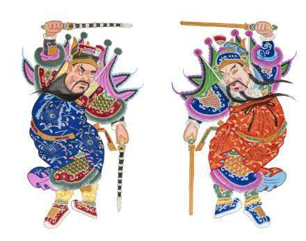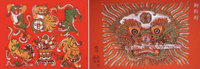 福建漳州年画《五虎(福)招财》《狮衔剑》