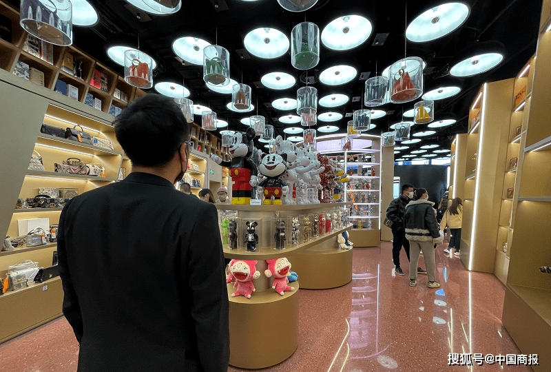 店内工作人员告诉记者,胖虎这家店经营面积有1000多平方米。在商品选择上,店内摆放了超300只经典款路易威登商品,还有200只“专柜断货王”爱马仕包袋和上百只香奈儿包袋等,一些品牌经典款包袋在这里都有销售。除了一线大牌商品,门店还设置了摆满超级联名IP潮玩的艺术潮玩区。