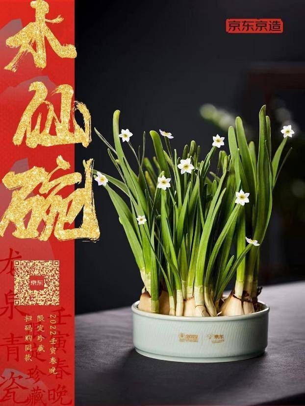 此次春晚联名款的龙泉青瓷水仙碗,传承千年古法工艺,从原料选取,揉泥、拉坯、修坯、跳刀装饰、素烧、多次上釉、再到正式烧制,历经几十道工序制作而成。碗体选用简洁的圆形直口造型,线条流畅自然,器型圆润饱满,寓意团团圆圆;釉层丰满肥厚,釉面浓淡相宜,色泽青绿淡雅,呈现出晶莹凝润的如玉质感。据悉,这些水仙碗中,刻有“0001-2022”限定编号的2022个青瓷水仙碗将用于央视礼赠以及线上抽奖,同款水仙碗也将在京东同步开售。