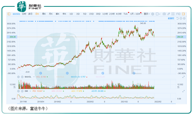 收购豪威科技也在很大程度上促进了韦尔股份的飙涨。经统计,自2019年至今,该公司的股价(前复权)已经累涨超过7.8倍,非常亮眼。
