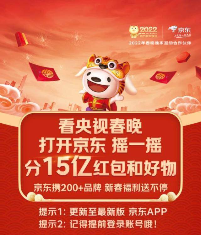 2022虎年春晚,京东将以丰富的商品、不间断的物流、可靠的技术,把最大的诚意带给屏幕前的每一位观众,旨在为广大观众、用户带来玩法最简单、福利最多样的全新互动体验。如果不想错过这些红包和实物大礼,那就在今晚锁定春晚直播,随时做好准备,跟随主持人的口令,打开京东APP摇起来吧。