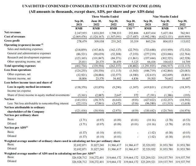 成本方面,去年第三季度营收成本为15.47亿元,较上年同期的20.695亿元下降25.2%。其中,营收分享费和内容成本为13.2亿元,上年同期为18.4亿元。带宽成本为1.35亿元,上年同期为1.63亿元。