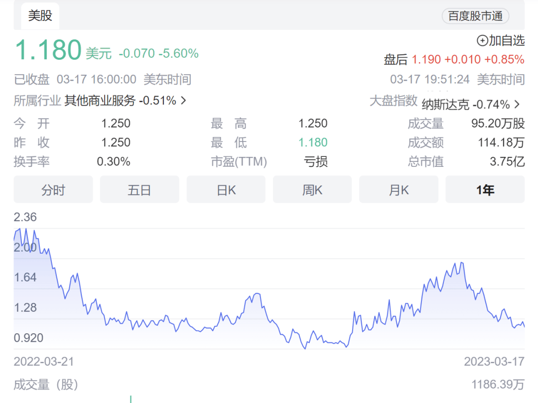 截至3月17日收盘,斗鱼股价报收1.18美元,跌5.6%,总市值3.75亿美元。