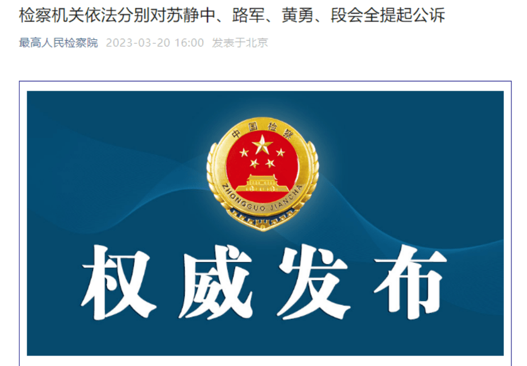3月20日下午,最高人民检察院通报称,吉林检察机关依法对路军涉嫌受贿、挪用公款、国有公司人员滥用职权案提起公诉。