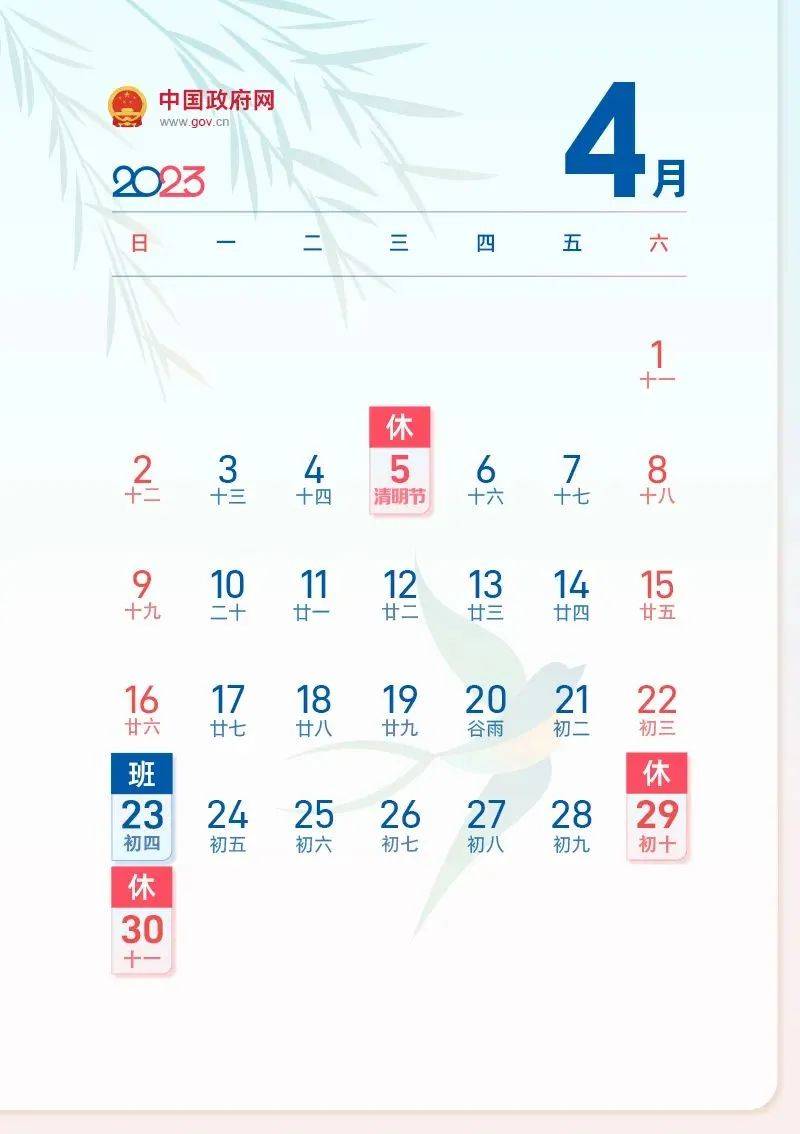 4月5日放假,共1天