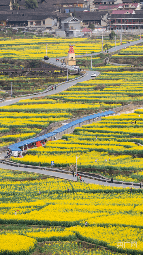 油菜花田层层叠叠,引来众多游客“打卡”(央广网发 宋显金 摄)