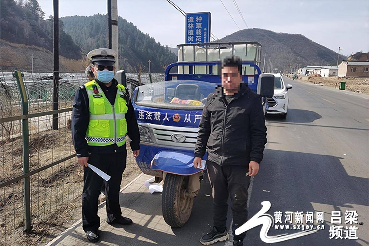 黄河新闻网吕梁讯 案例1:3月19日,中阳交警万年饱中队执勤民警在河暖线3公里500米路段巡逻时,发现一辆三轮车的后斗上站着一名乘客,一旦碰到急刹车或转弯时,极易引发交通事故,存在严重的安全隐患。民警将其拦下,经询问得知,两名男子是在同一个工地干活,顺路捎一程,民警对驾乘人员进行了批评教育,告知其违法载人的危害,并依法对驾驶人违法载人的行为进行处罚,责令车斗内人转乘其他车辆前往。