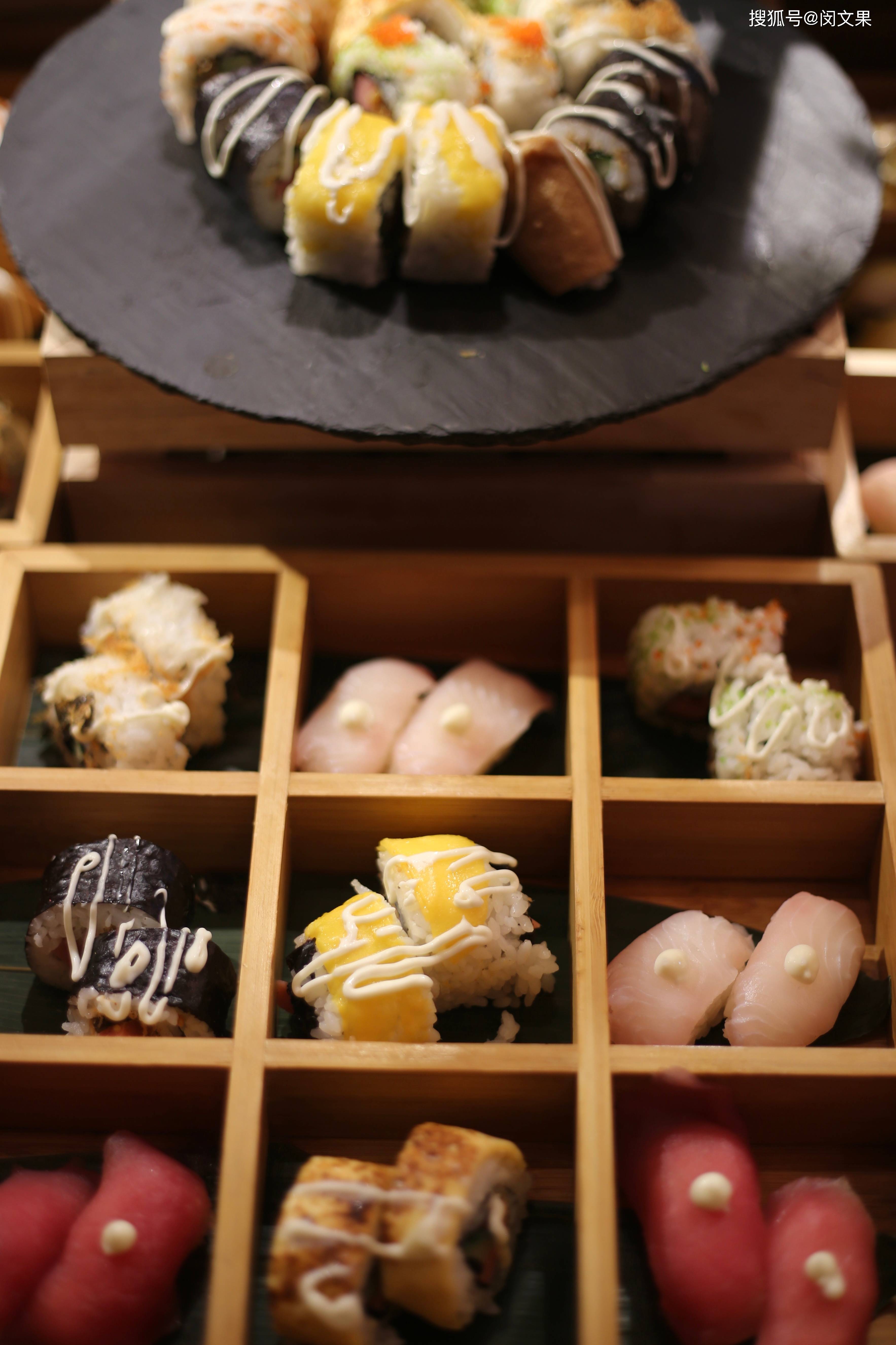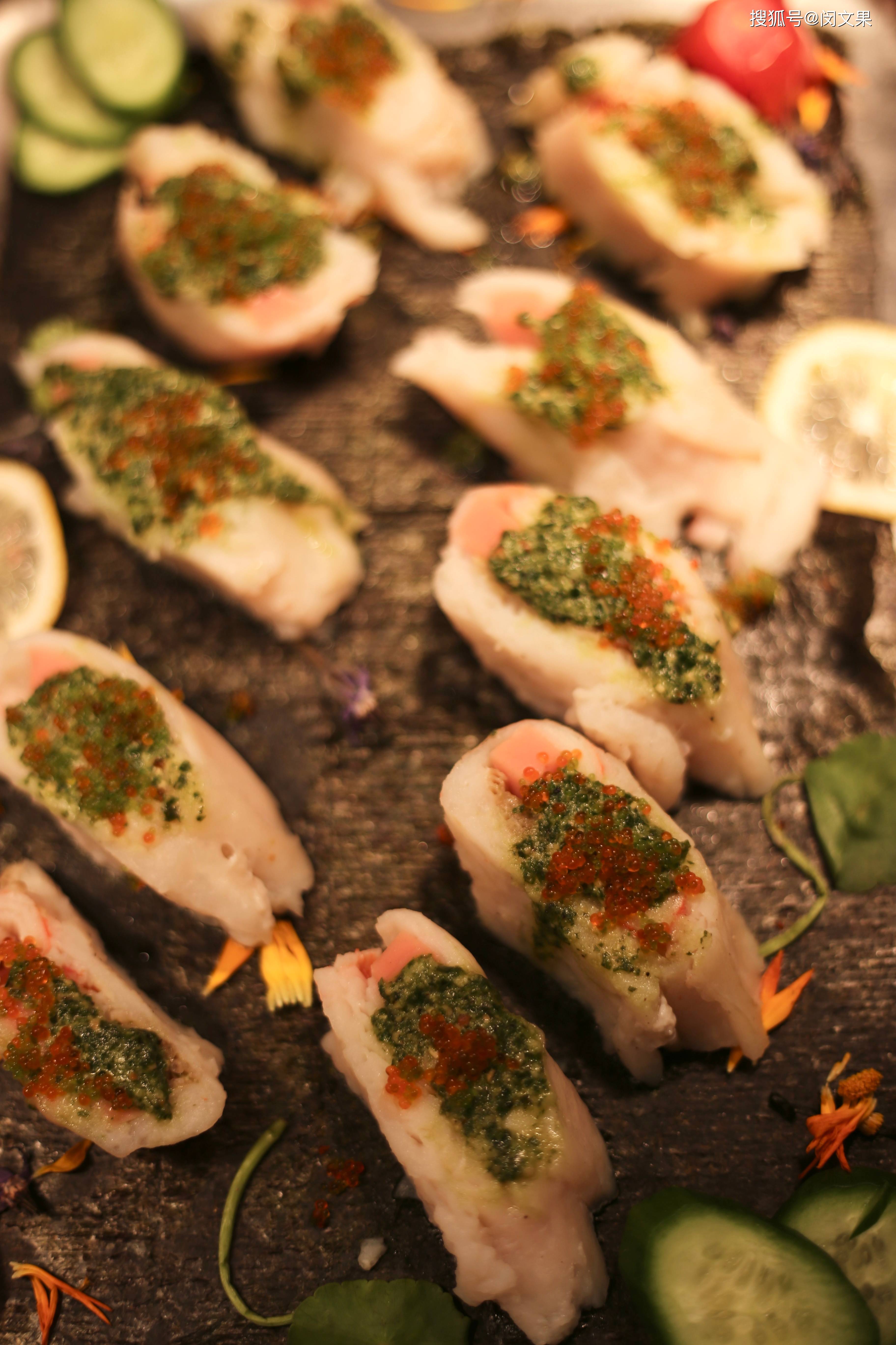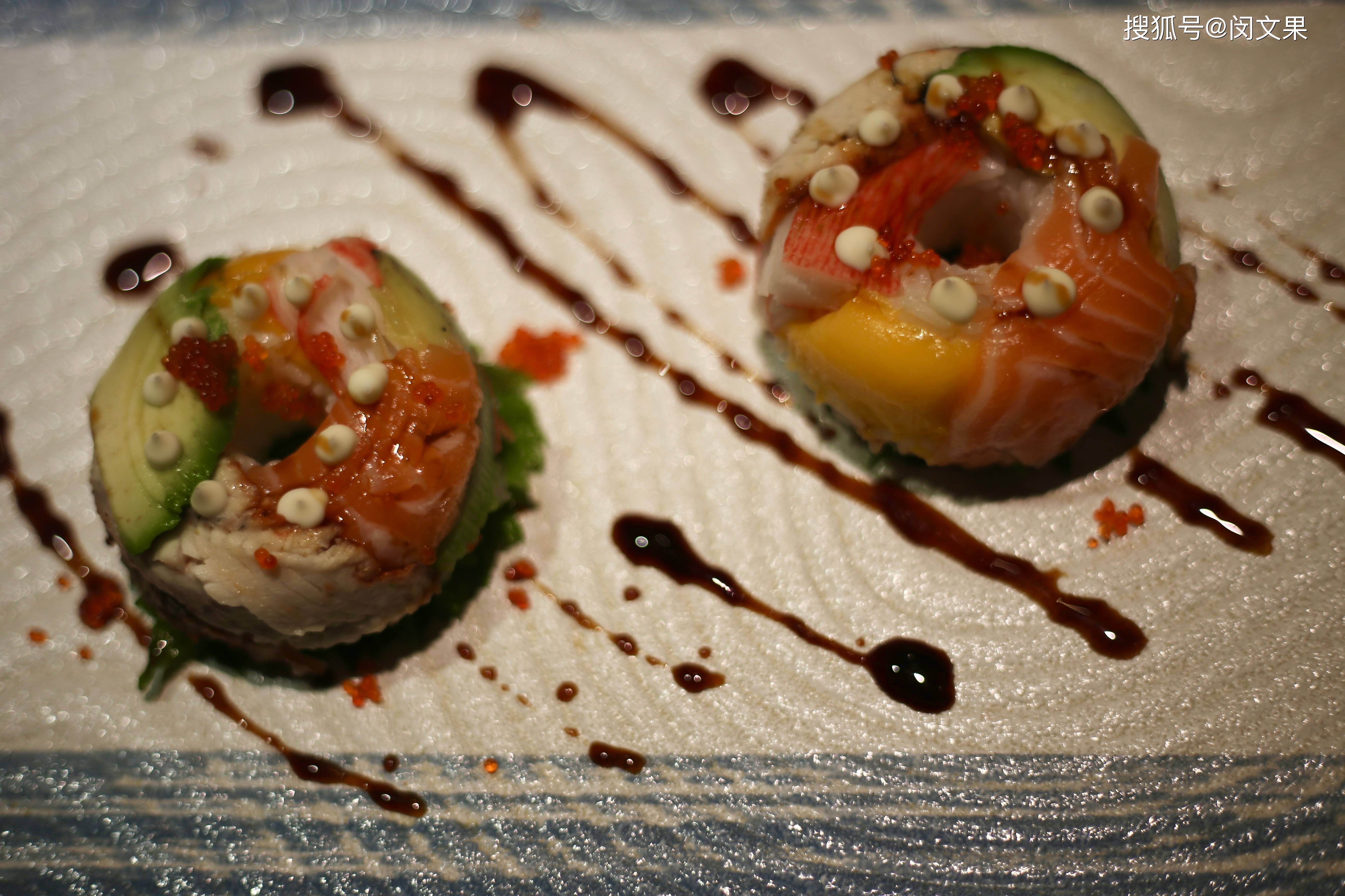 再说说午餐吃到的几道特别菜品,三文鱼芝士温暖,最后装饰调料是厨师现场在餐桌进行的,很美味,三文鱼也感觉很新鲜;还有一道类似甜甜圈的饭团,感觉还蛮创意的,也是好吃的。最后甜品天妇罗冰淇淋,不知道具体菜名叫啥,总之很惊喜,冰淇淋被包裹在轻微油炸好的天妇罗里,切开冰淇淋露出,口感丰富,有层次感。这间日料餐厅,人均在300+左右,价格还算OK吧,针对商务人士还有68元左右的定食可供选择,超高性价比。
