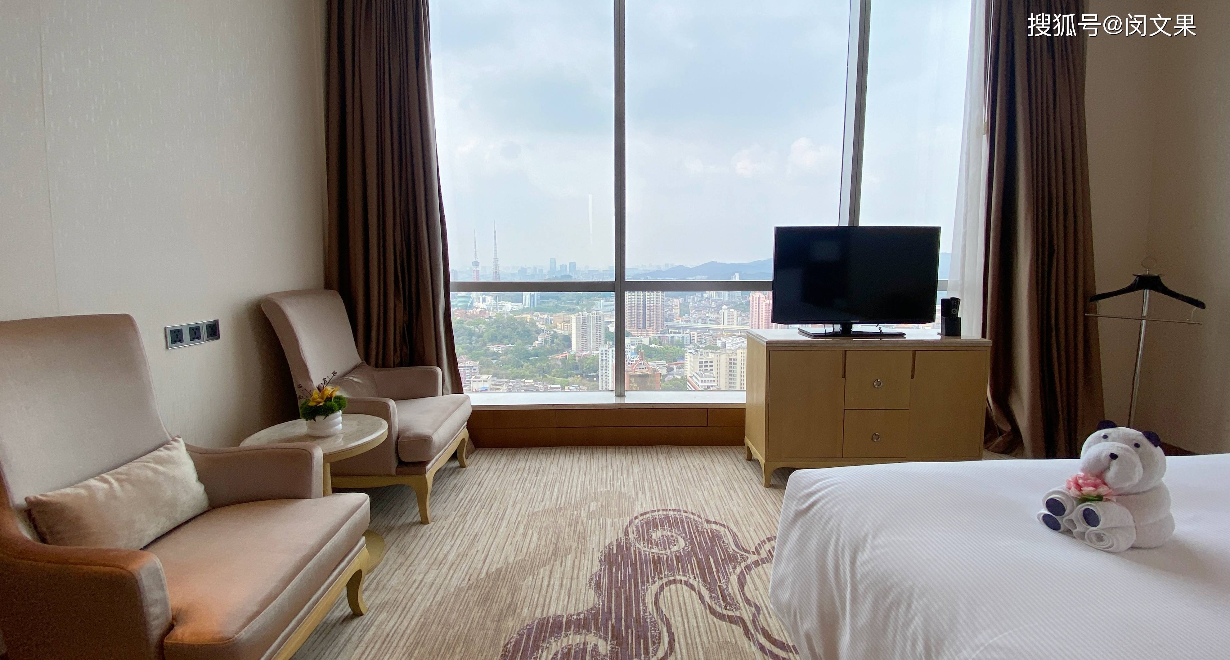 酒店所在楼体建筑外观其实还蛮现代的,共计301间宽敞舒适的客房分布在楼体的25-41层。客人可透过全落地窗饱览城景和迷人的越秀公园美景。这次住酒店风景很不错的一间位于40层的行政套房,客厅是城景,可远眺天河地标建筑,也算是高空景致了。卧室有越秀公园景和山景,浴室的窗户亦把城市景观收纳进来。希尔顿逸林酒店独有的“甜梦床”助力拥有好睡眠,高层而居把噪音隔外,房间挺安静。