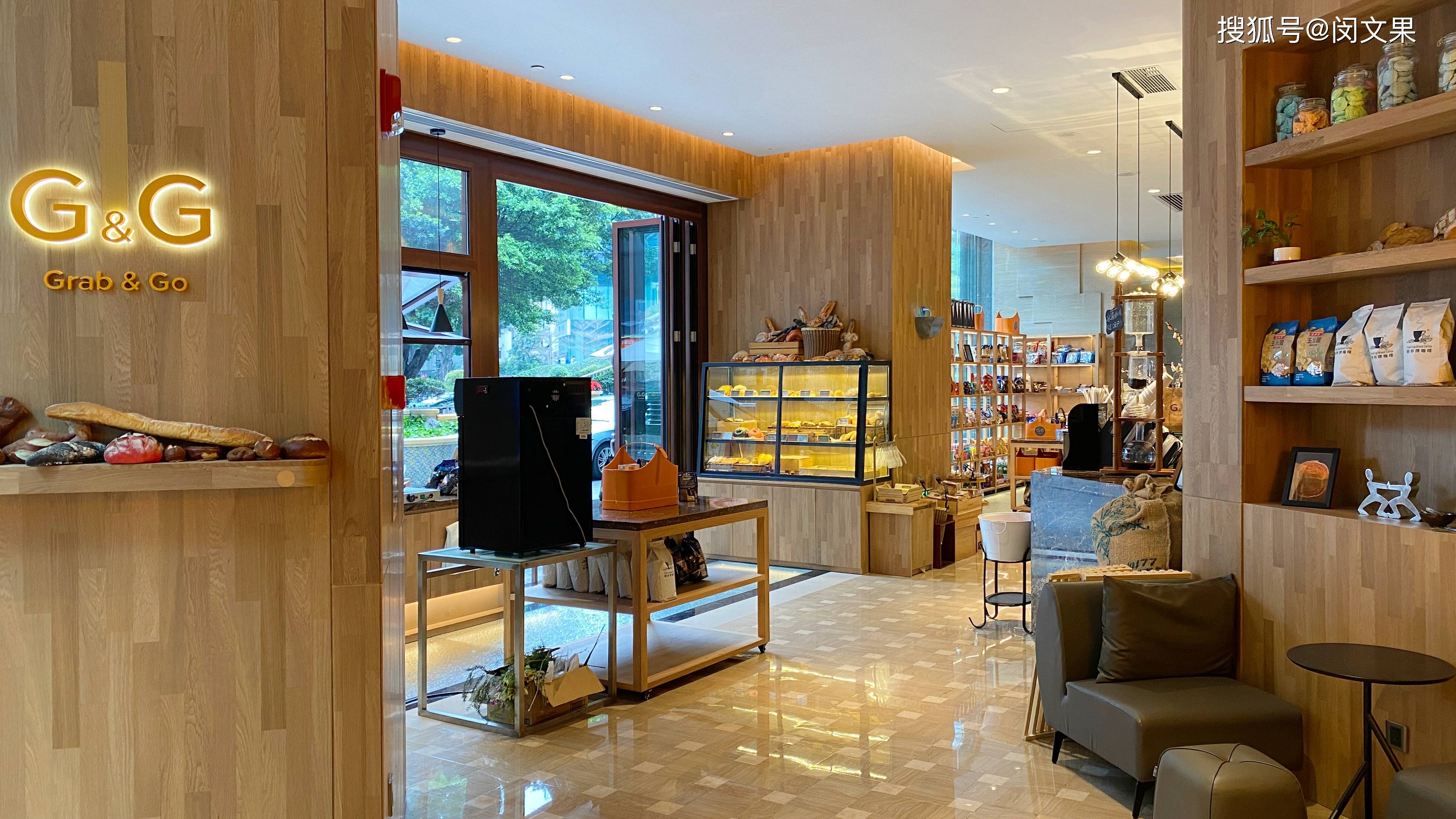 另外位于酒店正门一侧的的甜速站 Grab & Go,超级推荐,才焕新重启不久。Grab & Go集合咖啡、面包、饮料、轻食、酒饮、蛋糕、进口零食为一体。面包种类很多,口感与颜值兼备,有牛角芬、杏仁海盐爆浆蛋糕、华夫牛角披萨、日式海盐面包卷、肉松贝果、杏仁榛子牛角包、海盐柠檬德式碱水包等多款创意新品,且都是每日现烤,即购即享。