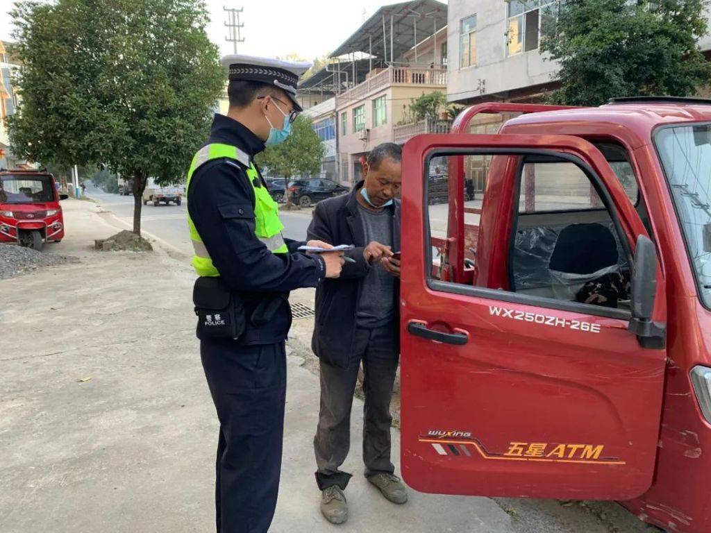 盛家坝派出所民警检查三轮车。