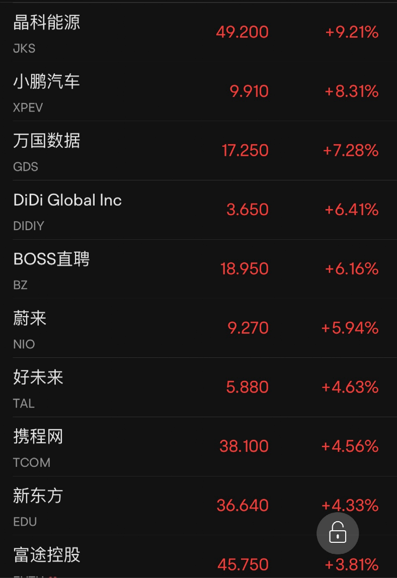 中概股多数上涨