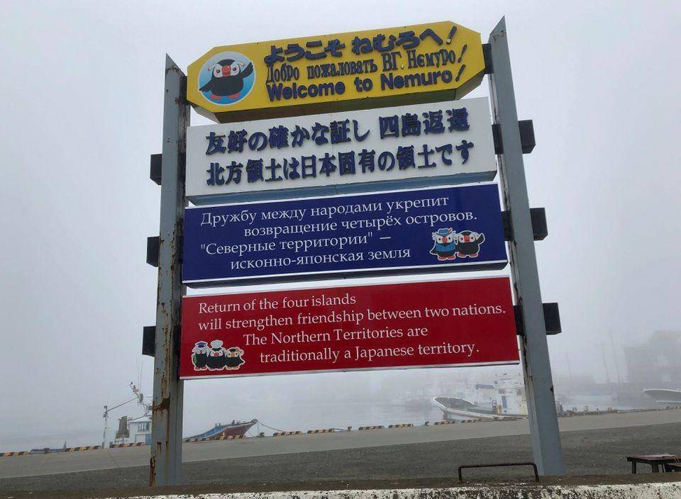 日本一直想要拿回南千岛群岛,图为要求俄罗斯归还岛屿的标志牌