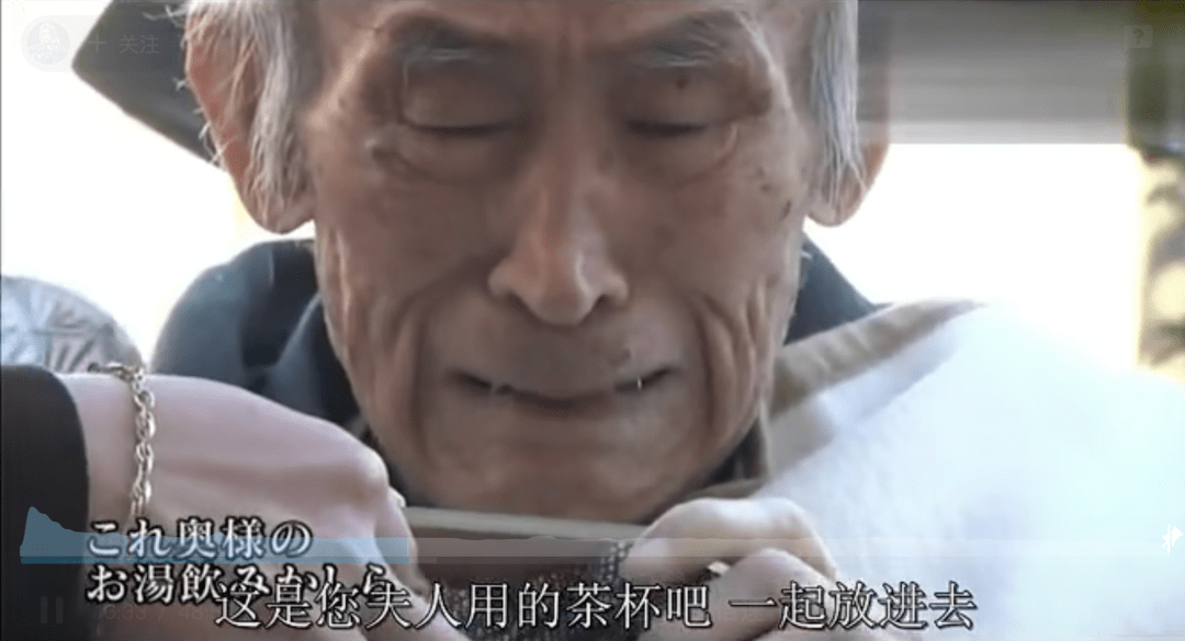 员工清点着大井先生的东西,给他带了几件衣物,妻子的骨灰盒,还有他年轻的时候最爱的手表。