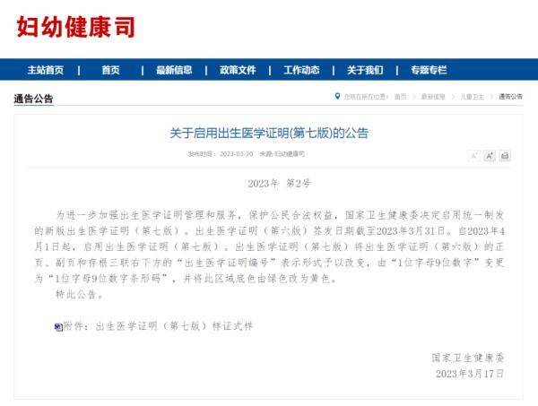 《关于启用出生医学证明(第七版)的公告》