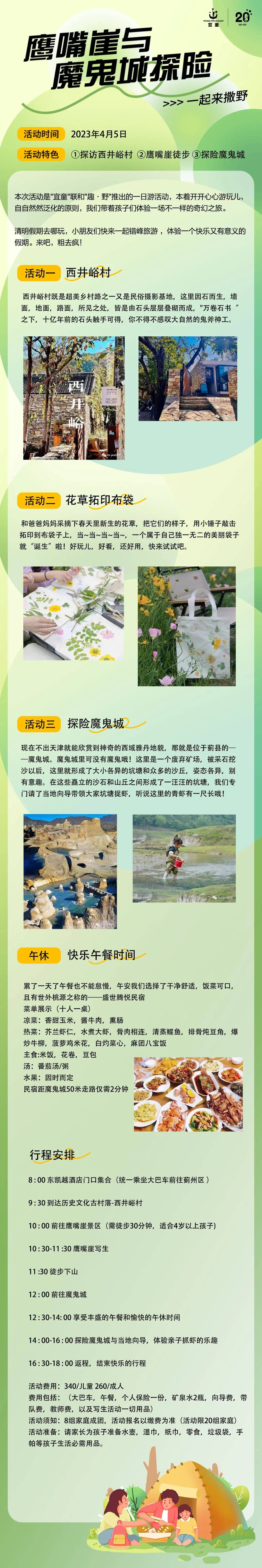 别着急,下一场这不就来了吗,这个清明节,我们一起去徒步、探险、抓虾、做漂亮的拓印画~