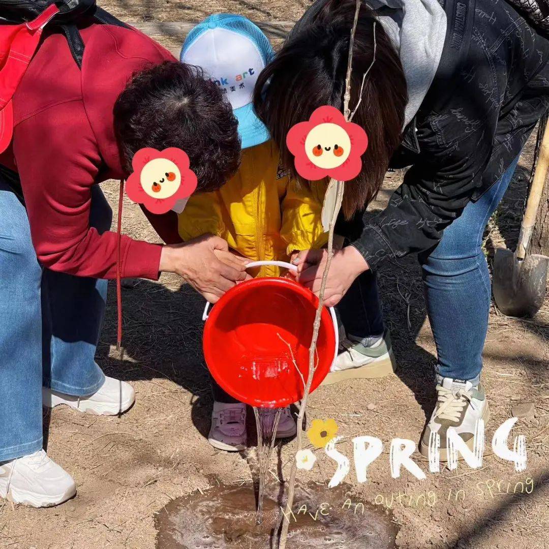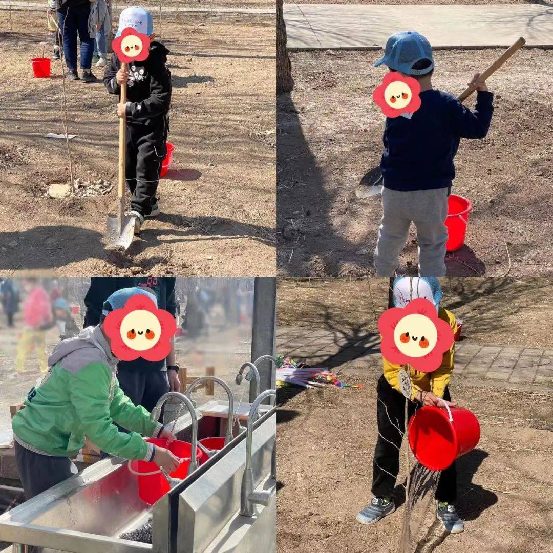种下小树,从挖土到种苗,再到浇水,宝贝们自己动手,太优秀了~