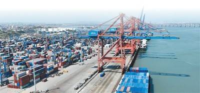 2022年9月15日,海上丝绸之路起点泉州正式开通俄罗斯远东外贸集装箱航线。图为集装箱轮正在泉州港装载货物。