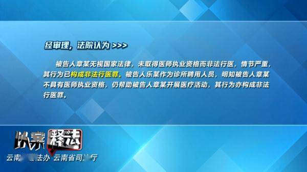 盘龙区人民法院刑事审判庭法官丁璇:“被告人没有医师执业的相关证书,他租用了一个诊所的场地来诊疗,被告人非法行医的行为都不是导致被害人死亡的直接的、主要的原因,但被告人的行为仍然属于非法行为的情节严重。”