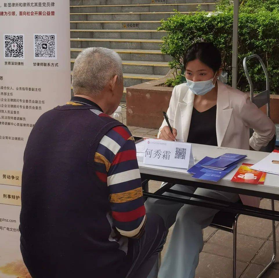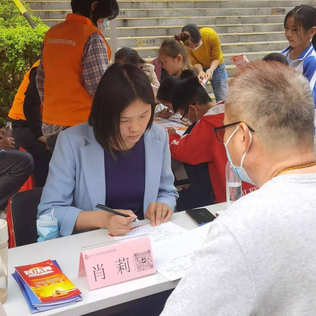 2023年3月19日,京师深圳律所党委统战委员甘伍叶带队,携手京师深圳律所第四党支部组织委员赵琳琳、宣传委员肖莉、京师深圳执业律师何秀霜下沉深圳北站社区,联合龙悦居第二党支部共同开展“我为群众办实事”系列--第二期社区公益普法活动。