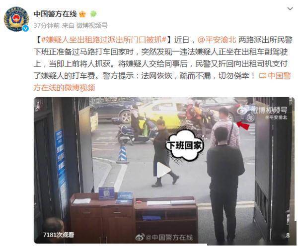 原标题:法网恢恢!嫌疑人坐出租路过派出所,成功被警方抓获