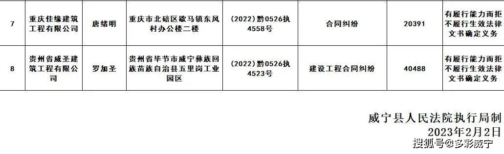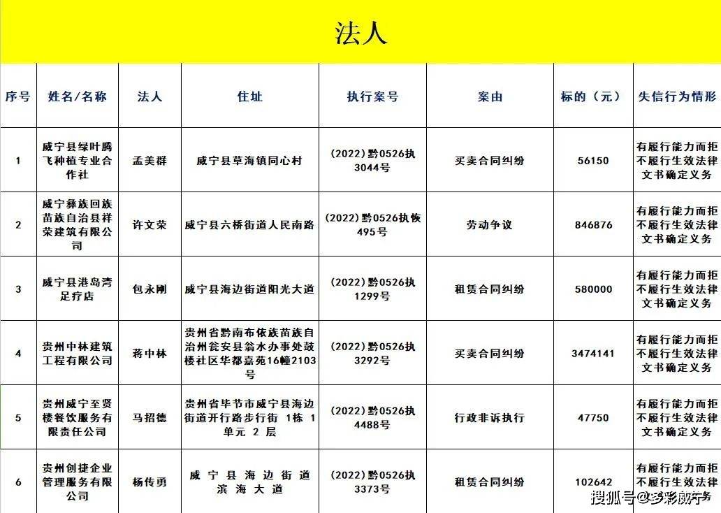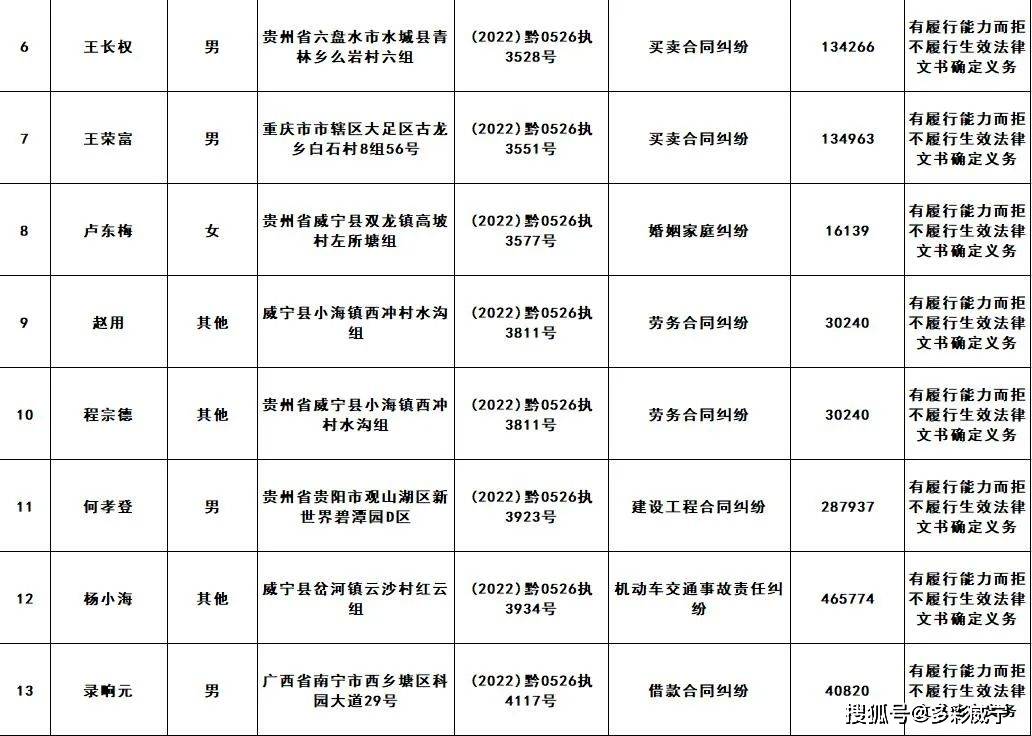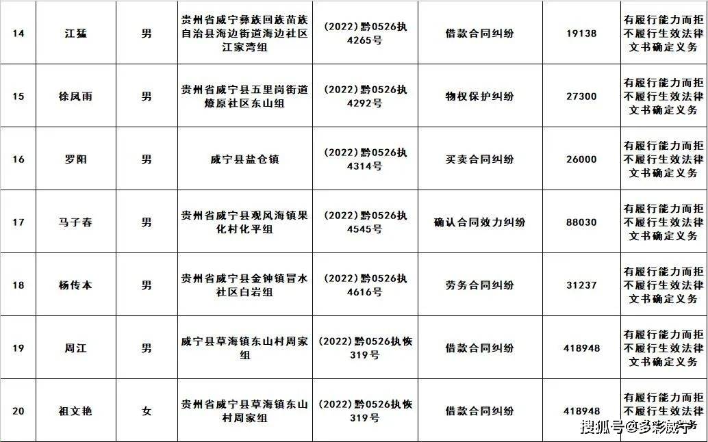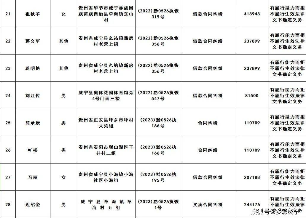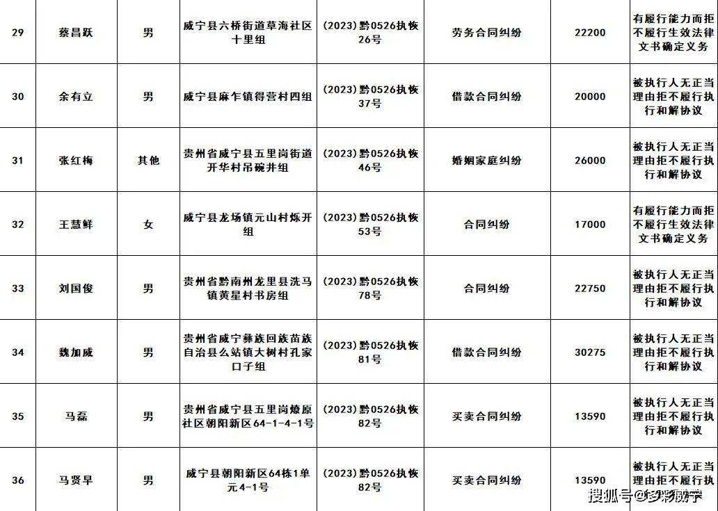 原标题:威宁县人民法院发布失信被执行人黑名单信息(第二十三批)