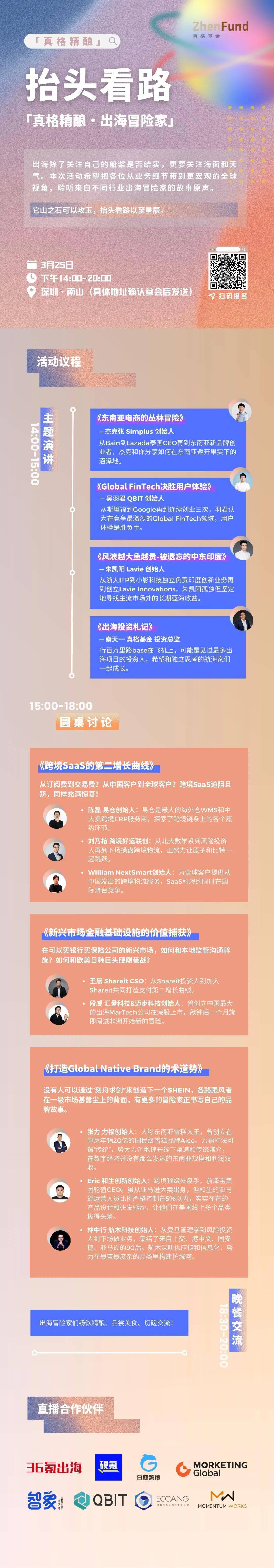 3 月 25 日,真格基金 在深圳举办「真格精酿·出海冒险家」活动, 邀你和投资人、从业者一起,从多维度的视角观察出海现状。