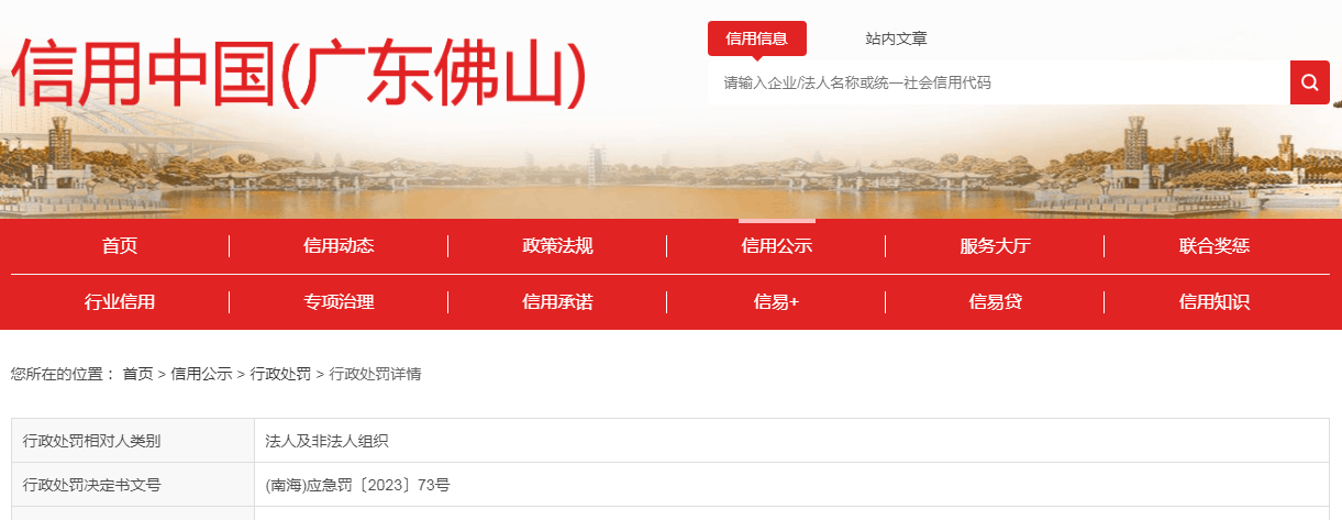 | 处罚机关 | 佛山市南海区应急管理局 | |||||