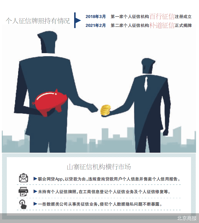 近几年,随着线上信贷市场的爆发,个人征信市场需求大幅上升,但随着山寨征信机构横行,再到一些数据类公司从事类征信业务,个人征信市场也出现了一定的模糊地带,侵犯个人数据隐私问题也不断暴露。