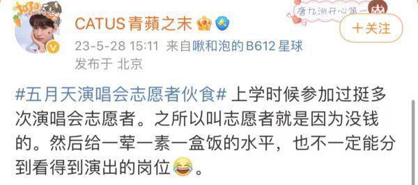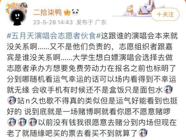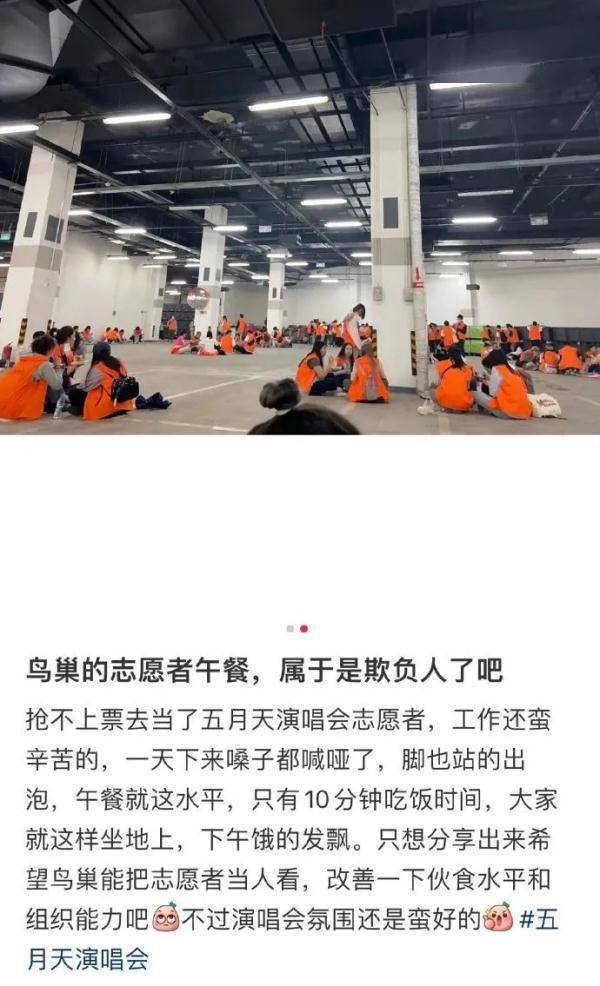 到底有没有这样的志愿者餐?志愿者待遇究竟如何?记者联系了此次五月天演唱会志愿者的组织方之一:歌华时代路公司,但截至发稿时都没有得到回应。