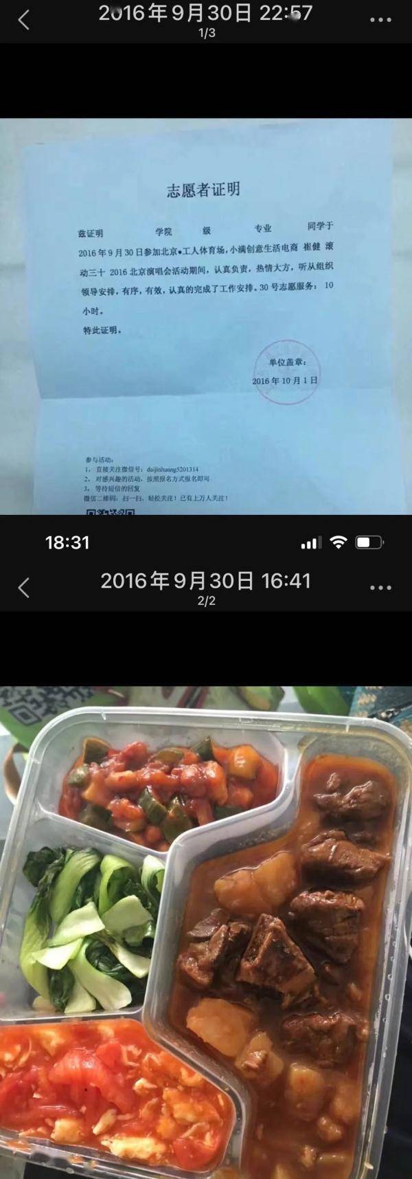 他去某演唱会当志愿者的工作餐