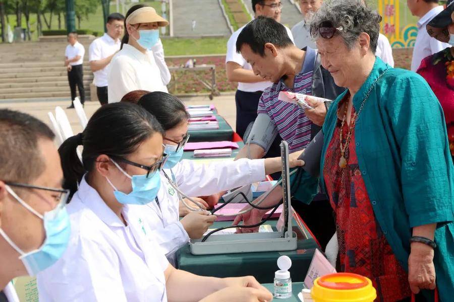 同时,医疗机构义诊团队为群众免费测量血压、血糖,提供医疗健康知识咨询,营造了浓厚宣传氛围。