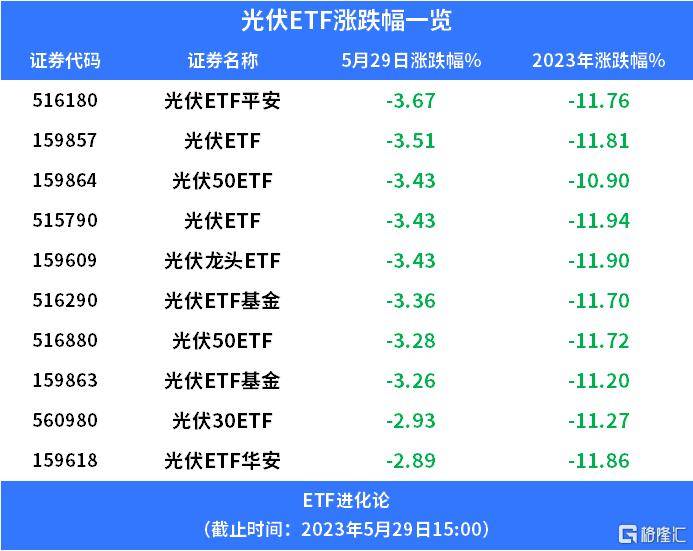 光伏ETF连续两个交易日下跌,今天跌超3%,今年以来跌超10%。