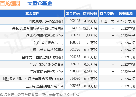 重仓百龙创园的前十大公募基金请见下表: